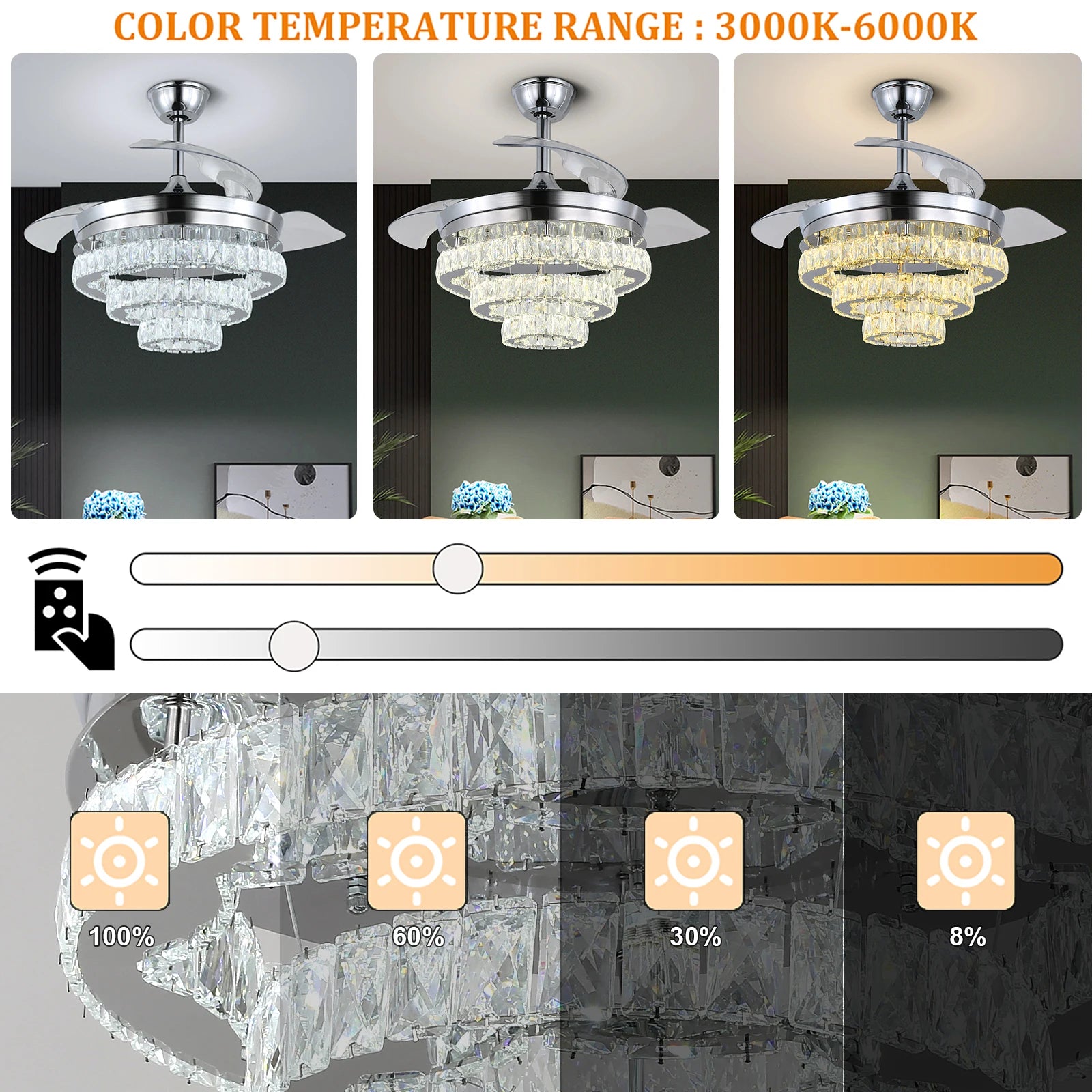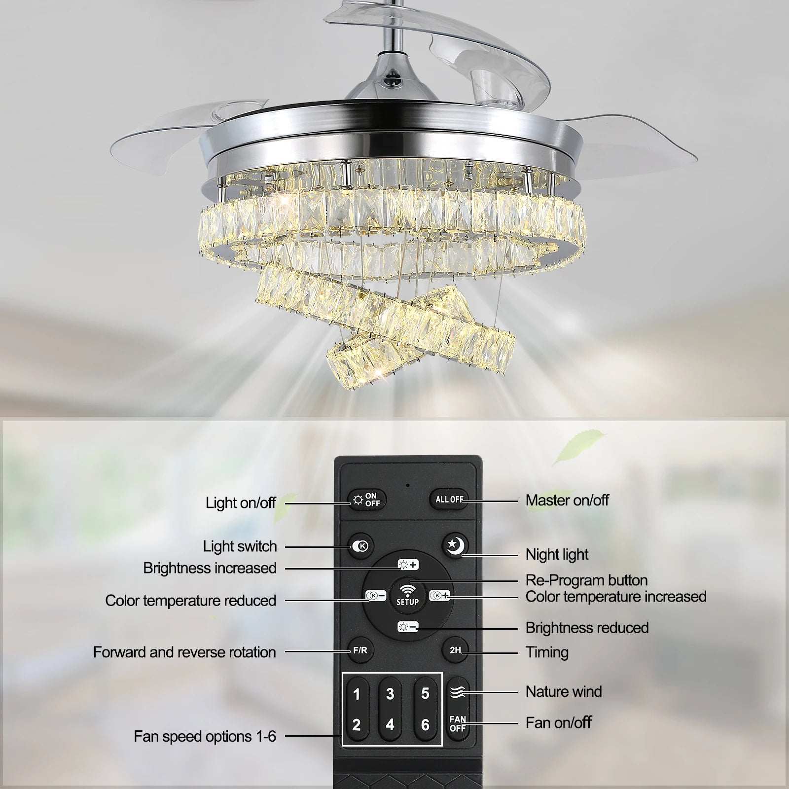 Modern Ceiling Fan Led Light/ Remote Control/ Living Dining Room Ceiling Fan Lamp/ Chandelier Indoor Decor Fixture BLDC Intelligent